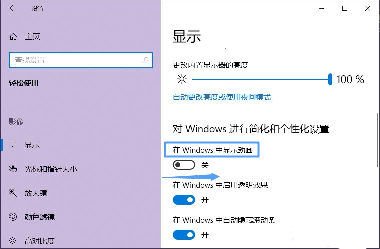 4、之后將在windows中顯示動畫的開關向右滑動。