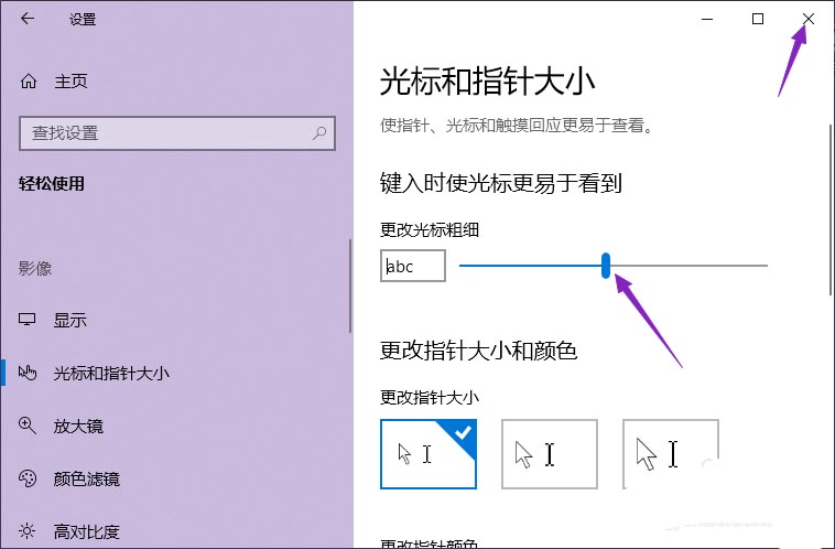 6、滑動完成后如圖所示,這樣我們便更改了光標(biāo)的粗細。
