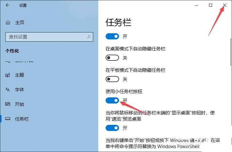 6、這樣我們便開啟了使用小任務欄按鈕,然后點擊關閉。