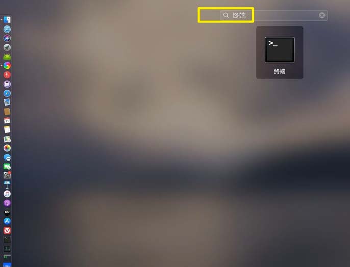 1、在你的OS點擊啟動臺,搜索框利用輸入法輸入終端。