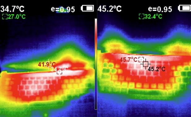 與華為MateBook 13 銳龍版相比,聯(lián)想小新13 Pro的表現(xiàn)就有點(diǎn)讓人失望了。雖然它提供了安靜模式、均衡模式、野獸模式三種散熱模式供用戶選擇。但即使是在安靜模式下進(jìn)行壓力測(cè)試,它依然會(huì)發(fā)出讓人無法忽視的噪音。在安靜模式下經(jīng)過30分鐘的壓力測(cè)試之后,發(fā)熱主要集中在下圖的右邊,也就是熱管覆蓋的CPU那里,烤機(jī)的時(shí)候,下面會(huì)明顯的感覺到發(fā)燙,那么對(duì)應(yīng)的鍵盤區(qū)域WASD那一塊溫度最高,當(dāng)然手摸上去談不上燙,大概50°C左右。