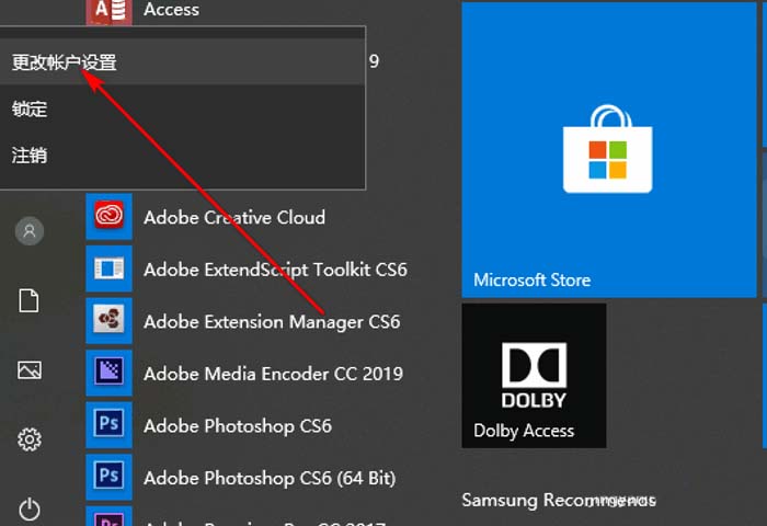 1、打開(kāi)開(kāi)始菜單,點(diǎn)擊賬戶頭像。