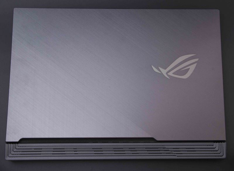 ROG槍神3 PLUS的A面依然有個大大的ROG LOGO,當然身為ROG系列的一員這個LOGO是具有RGB燈效的。而整個A面的質感也不會給人一種公模的廉價感,表面采用了金屬拉絲紋理,并且紋理中做了一個斜切線,視覺上更加立體。