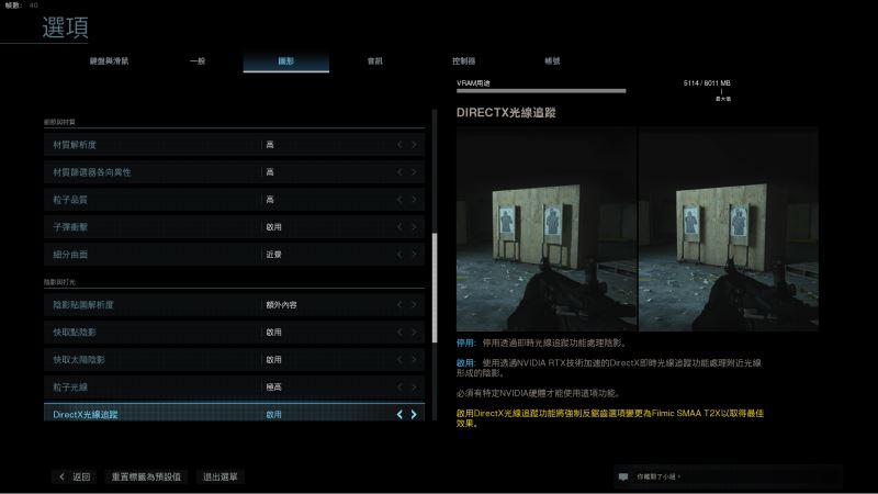 經過一小時的體驗,最高畫質下開啟光線追蹤時,平均幀數在86幀,遠超穩60幀的水平。其實游戲時的幀數都可以保持在85幀以上,在游戲每段劇情剛開始時會出現掉幀現象,小編在多臺電腦上游戲都出現了這個狀況,也從側面證實這是游戲優化的問題,希望優化補丁能盡快出來。這在關閉光線追蹤后體驗更加明顯,幀數起伏更大,不過即使會有突然掉幀的現象,平均幀數也達到了143幀。而且如果后期《使命召喚16:現代戰爭》再加入DLSS的話,開啟光線追蹤的幀數會更高一些。
