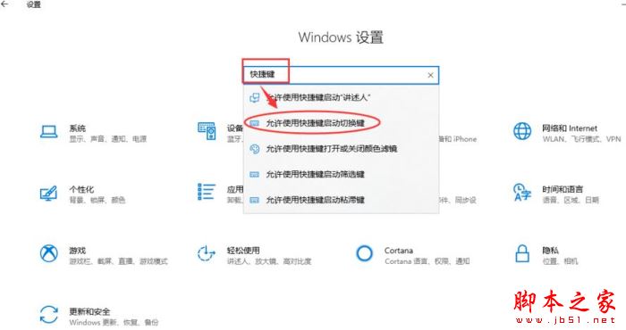 3、進入設置操作板后,點擊搜索框,輸入“快捷鍵”并點快捷鍵設置。