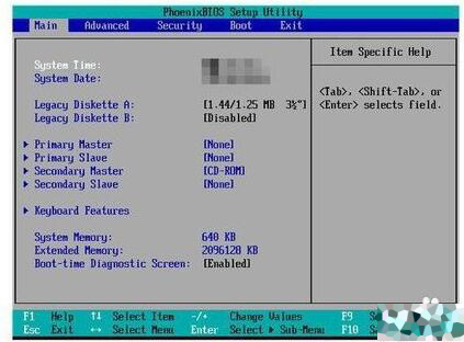 2、進入BIOS,可以看到BIOS主頁面,我們使用鍵盤左右鍵進入Main旁邊的Advanced,