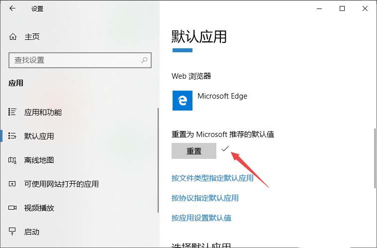 6、點擊后在重置后面會出現一個勾選,這樣我們也就重置默認應用成功了。