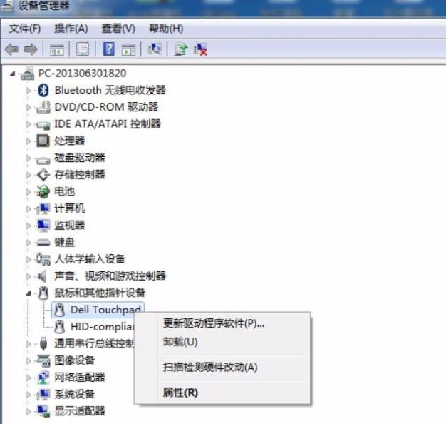 3、在彈出的設備管理器中找到鼠標和其他指針設備,在其中可以看到“Dell Touchpad”字樣。在上面點擊鼠標右鍵進行禁用即可。