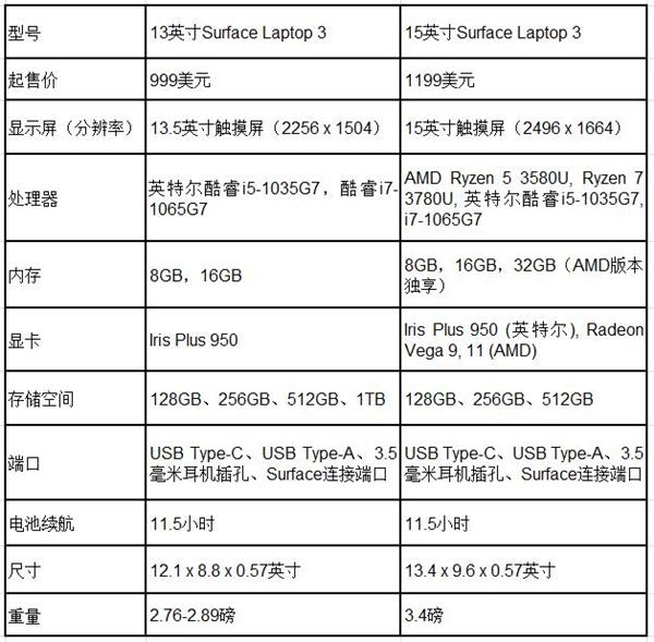 相比較之下,15英寸版本的Surface Laptop 3升級(jí)到AMD Ryzen 5 3580U處理器和AMD Radeon Vega 9或Vega 11顯卡。微軟稱,后一款顯卡提供了同類筆記本電腦中最快的圖形處理性能。