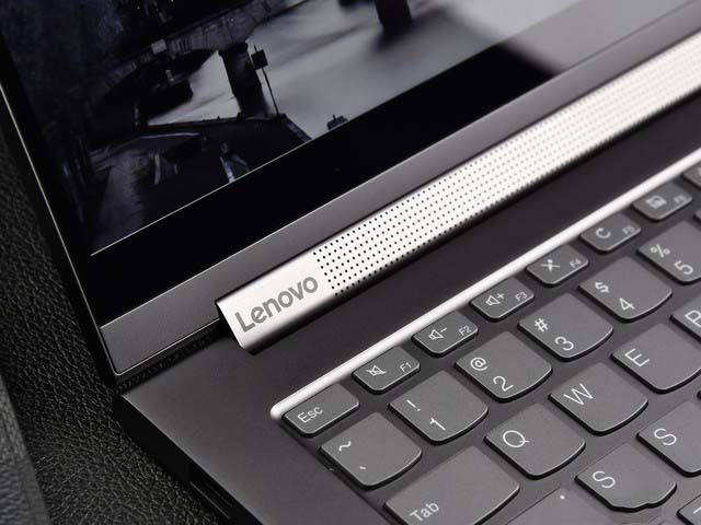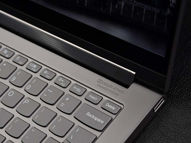 首先是聲音部分。YOGA C940采用了四個杜比認證的音箱,其中兩個位于底部兩側,負責低音,另外兩個則隱藏在轉軸中,負責高音。四音箱、高低音分離設計可以提供更有層次感的聲音表現,同時還支持杜比全景聲音響系統,在輕薄本領域中堪稱奢華。我們重點聊一聊轉軸中的兩個音箱,這也是YOGA C940獨特魅力所在。