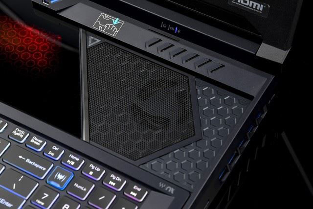 將鍵盤區(qū)與腕托滑出后的戰(zhàn)斧700不僅可以獲得更舒適的操作體驗(yàn),同時(shí)也即刻進(jìn)入到了極刃模式中。在該模式下,戰(zhàn)斧700的CPU與GPU會(huì)開啟同步超頻,而且額外獲得的兩個(gè)風(fēng)道還能夠提升20%的風(fēng)通量,再加上整機(jī)造型變得更加炫酷,可謂是一舉四得。
