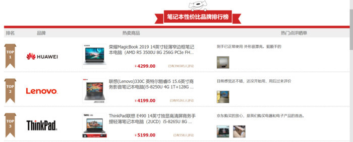 所謂性價比,可以理解為性能和價格的平衡點。根據京東上面的性價比排行也可見一斑。排行前三的筆記本價位基本在4000-5000。從中也可以看出,性價比=便宜+大品牌+新品+......事實上,在選擇筆記本的時候用戶挑剔的并非只是價錢,而是相同價錢背后盡可能多的附加值,即性價比。