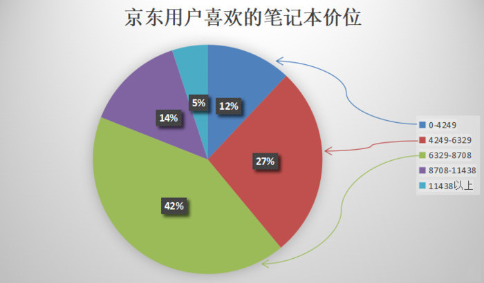 從知名電商平臺京東商城可以看到,用戶喜歡的價位集中在8708元以下的占比為81%,剩余的為高于8708元的筆記本,最高數量群是“6329-8708元”,占比為42%。從這也能明顯看出,大多數用戶對筆記本的追求其實并沒有那么“極致”。