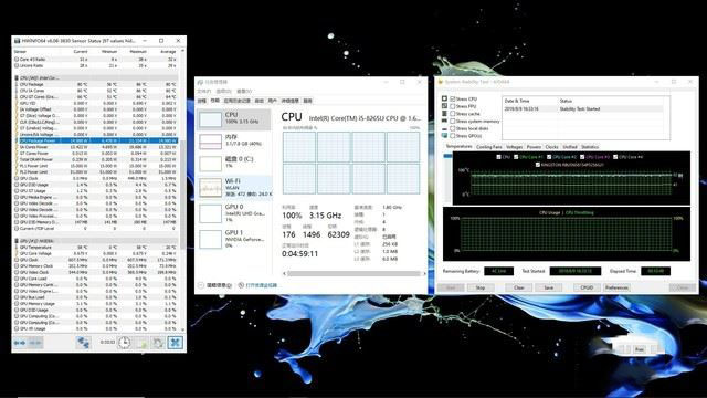 我們對TravelMate P6進行了30分鐘的CPU單烤測試(AIDA64系統穩定性測試中單獨勾選CPU項),30分鐘后,CPU頻率為3.15GHz,功耗為15W,溫度為80℃??綑C過程中CPU功耗、頻率都比較穩定,沒有出現降頻的情況。