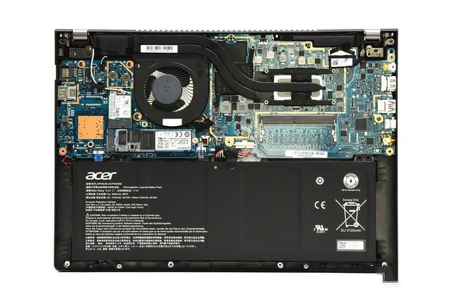 主板下方幾乎全部被電池占據,不過我們發現電池并沒有固定螺絲,而是采用嵌入的固定方式,在劇烈顛簸中不排除存在電池松動的風險。