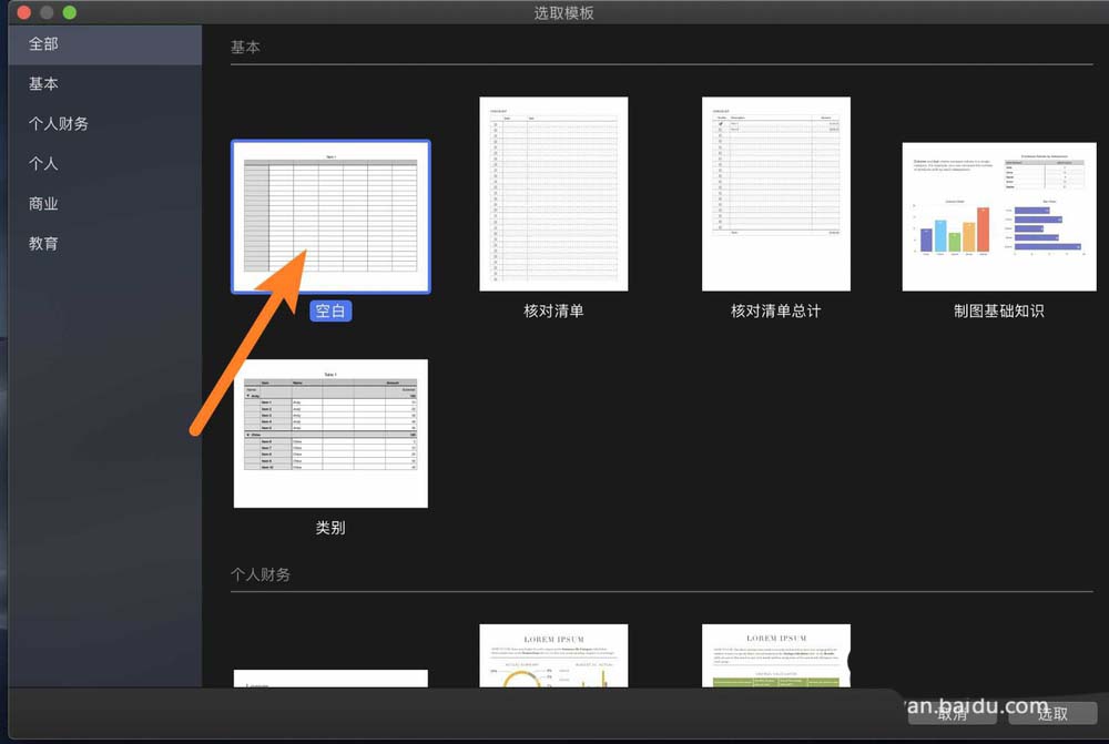 3、然后選空白表格→選取,如下。