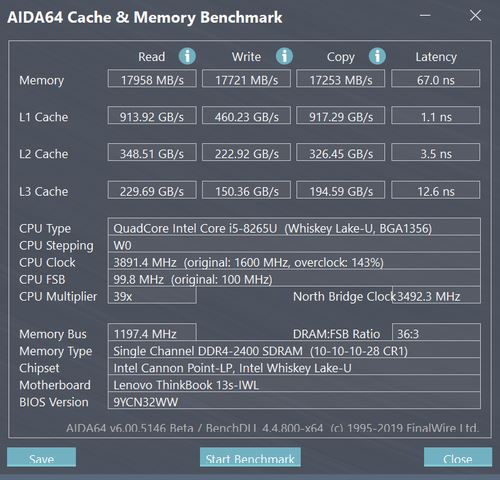 這款筆記本采用了8GB DDR4-2400內(nèi)存,實(shí)測(cè)讀取速度為17958MB/s,寫入速度為17721MB/s,大容量的內(nèi)存顯然會(huì)帶來更為快速的數(shù)據(jù)交換。