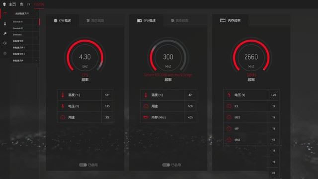 另外系統內置了AWCC(外星人控制中心),通過其中超頻配置文件可實現“傻瓜式”超頻體驗。而且系統也內置了三個超頻配置文件,只需點擊即可實現超頻,對小白用戶非常友好。用戶也可同步看到處理器、顯卡、內存的占用情況,非常直觀。