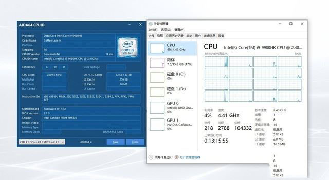 18.6mm的厚度,Alienware m17卻擁有i9-9980HK+RTX2080 Max-Q的強大核心組合,這讓我在測試之初為其捏了一把冷汗。畢竟受傳統觀念的影響,游戲本性能釋放會受到散熱模組設計的影響,游戲本機身越薄,其散熱效率越低。不過從實際測試來看,Alienware m17的性能表現還是不錯的。