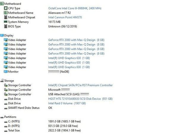 我重點體驗了全新Alienware m17,體驗機型的規格為:i9-9980HK、RTX2080 Max-Q、16GB DDR4(8GB×2)、2TB PCIe SSD(RAID0)+1TB HDD、Tobii眼球追蹤、17.3英寸全高清144Hz電競屏,售價39699元。