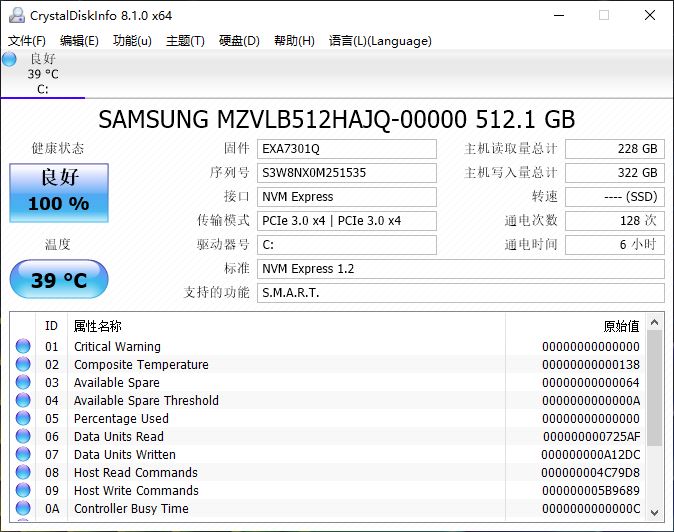 雷蛇靈刃15水銀版搭載了一塊512GB的三星PM981,這是三星970EVO對應的OEM版,屬于三星的甜點級型號。官方標稱連續讀取速度為3000MB/s,連續寫入速度為1800MB/s,隨機讀取速度為270K IOPS,隨機寫入速度為420K IOPS。