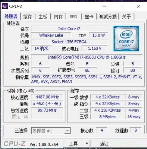 英特爾酷睿i7 8565U處理器基本參數(shù)