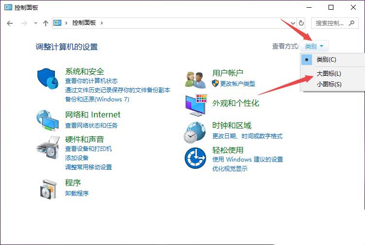 3、之后點擊類別邊上的下拉箭頭,然后選擇大圖標;