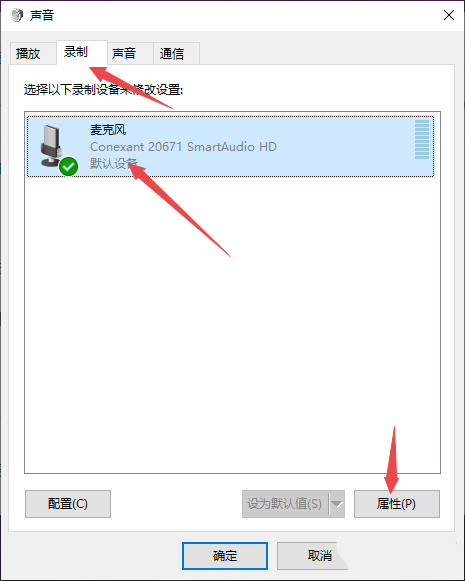 5、然后我們點(diǎn)擊錄制,之后點(diǎn)擊麥克風(fēng),然后我們點(diǎn)擊屬性;