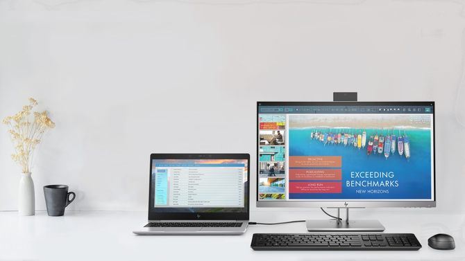 這里我們也推薦惠普的一款ELITEDISPLAY E243d顯示器來作為惠普戰66二代 AMD版的擴展顯示,銀白色的外觀與惠普戰66二代 AMD版也非常搭配。這款23.8英寸的顯示器采用了三邊窄邊框設計,并聯在一起的時候,有種電視墻的感覺,中間極窄的邊框讓畫面更具連續性,為用戶提供更寬廣的視野體驗。此外,惠普ELITEDISPLAY E243d顯示器還擁有功能豐富的拓展塢接口,支持4個 USB 3.1 接口、一個USB-C接口(可為筆記本供電、功率65瓦)、DisplayPort輸出端口、HDMI端口、VGA端口和一個RJ-45有線網口。與傳統功能顯示器+外置拓展塢的搭配相比,ELITEDISPLAY E243d的一體化程度更高,也能有效降低成本。