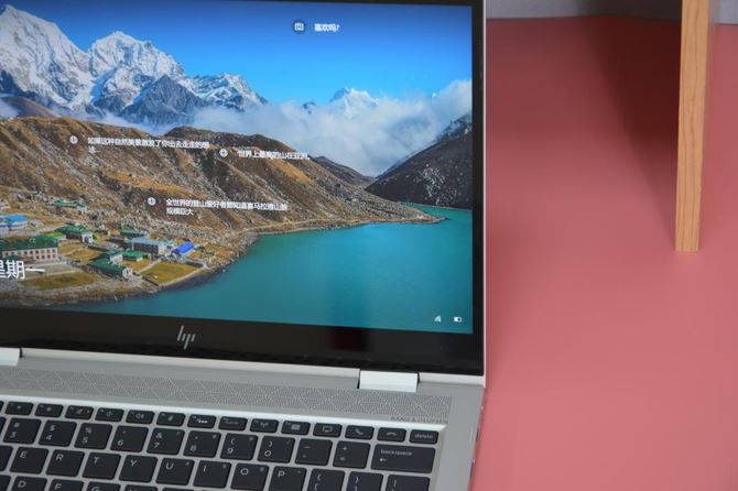 打開機(jī)身,我們看到惠普戰(zhàn)X的B面屏幕采用了當(dāng)下流行的窄邊框設(shè)計(jì),基本消除了屏幕黑邊,帶來了更高的屏占比,看起來沉浸感很強(qiáng),非常震撼;整個(gè)屏幕面板由第五代康寧大猩猩玻璃覆蓋,可避免日常使用中的劃傷;此外這塊屏幕最高支持10點(diǎn)觸控和手寫筆操作,無論是輕松滑動(dòng)瀏覽圖片、還是用觸控筆在屏幕上進(jìn)行繪畫創(chuàng)作、或是開公司開會(huì)時(shí)做筆記記錄,一切都非常輕松寫意。