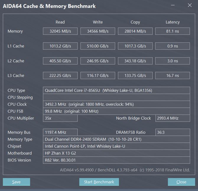 惠普戰(zhàn)X也配置了8GB×2 DDR4 2666雙通道高頻內(nèi)存,高達(dá)16GB的容量可同時(shí)多開更多程序、網(wǎng)頁(yè)、文檔;通過AID64的內(nèi)存測(cè)試,讀取速度、寫入速度、復(fù)制速度非別為32045MB/S、34566MB/S、28014MB/S、延遲為81.1ns,速度和延遲方面的性能表現(xiàn)也讓人滿意,不會(huì)成為硬件中的瓶頸。