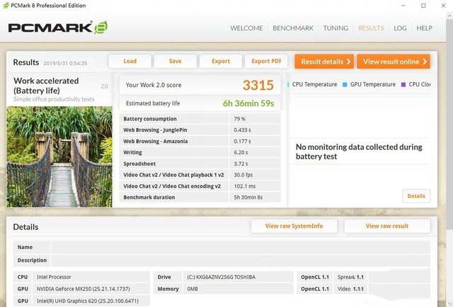 PCMARK 10能夠對筆記本的生產力性能進行考量,ThinkPadT490在Express模式下得分4314,屬于較高水平,其均衡的硬件配置與出眾的性能釋放能夠讓我們對它的生產力表現放心。