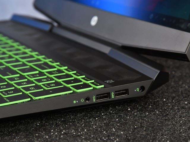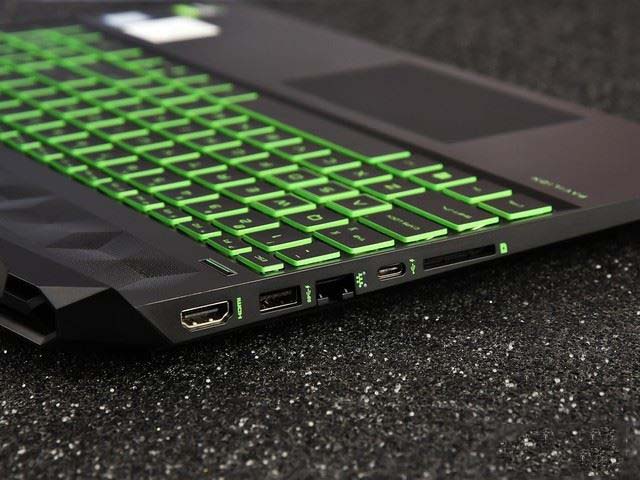 接口方面,惠普光影精靈5代配置頗為齊全,其中機(jī)身左側(cè)從左到右依次為HDMI、USB3.1gen1、RJ45(網(wǎng)線)、Type-C(支持視頻輸出)以及SD讀卡器。