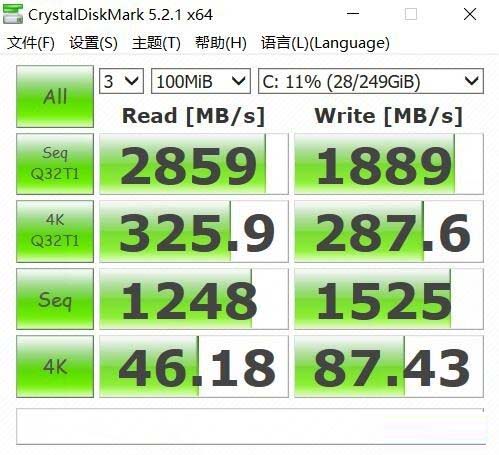 磁盤(pán)性能方面,惠普光影精靈5代所采用的PCIe固態(tài)硬盤(pán)相當(dāng)強(qiáng)悍,在CDM測(cè)試中跑出2859MB/s的順序讀取速度和1889MB/s的順序?qū)懭胨俣龋瑢儆诟叨怂健?/p>
