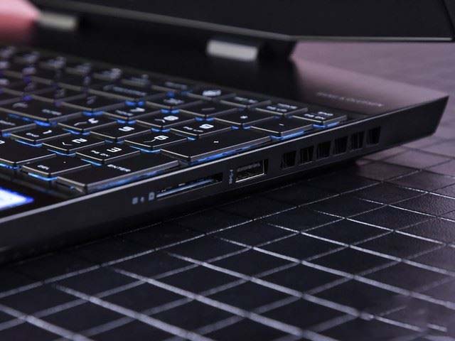 暗影精靈5 Air的接口分布于機身兩側,其中左側接口分別為適配器、RJ45、HDMI、USB3.1 Gen 1×2、miniDP、雷電3、3.5mm耳麥,右側接口分別為USB3.1 Gen 1、SD讀卡器。暗影精靈5 Air的接口完全可以滿足外接三款外設、實現三聯屏等需求,實用性較高。