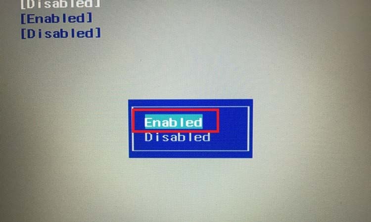 4、接著會彈出一個小窗口的選項,在其中選擇enabled選項,也就是啟用的意思,同樣是按回車鍵確認選擇。