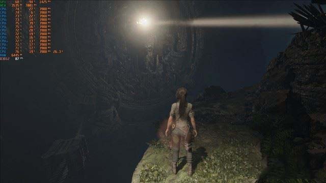 《古墓麗影:暗影》是第一款宣布支持RTX的3A大作,雖然支持RTX的補丁來的比較晚,但好在市面上支持RTX的游戲少的可憐。幀率記錄軟件在《古墓麗影:暗影》失效,所以這項測試并沒有做幀率曲線圖。畫質選擇內置“高”,開啟RTX DLSS,分辨率為1080P,關閉垂直同步。