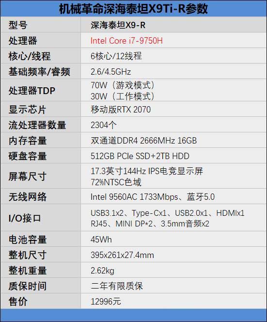 機械革命深海泰坦X9Ti-R筆記本參數如下:
