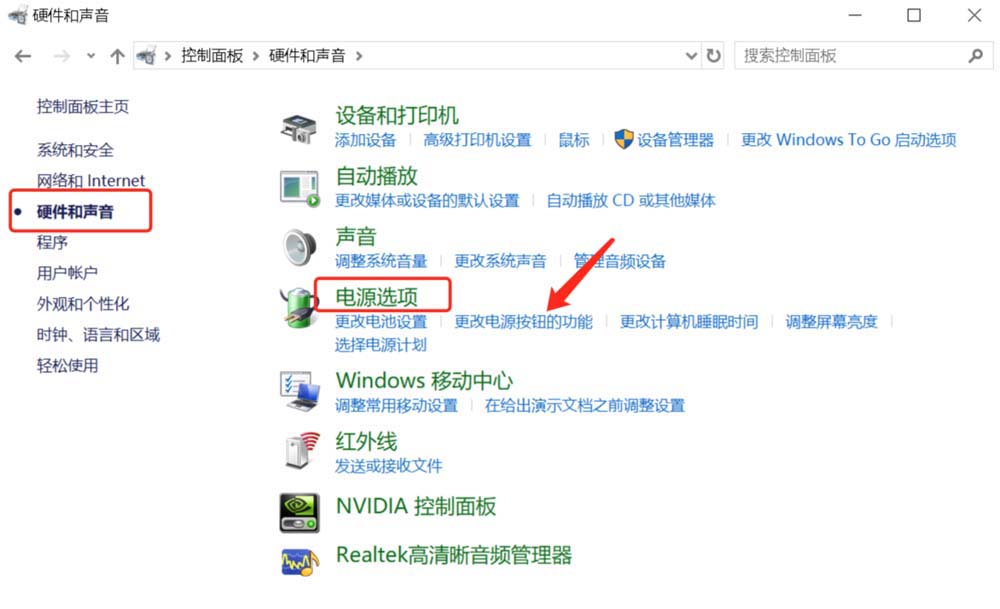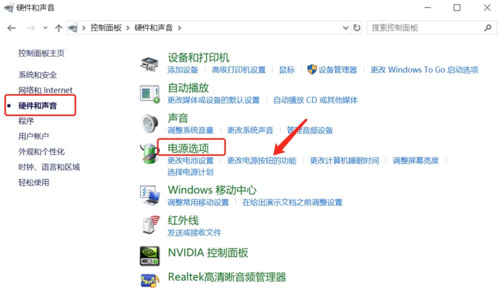 4、選擇【更改電源按扭的功能】選項。