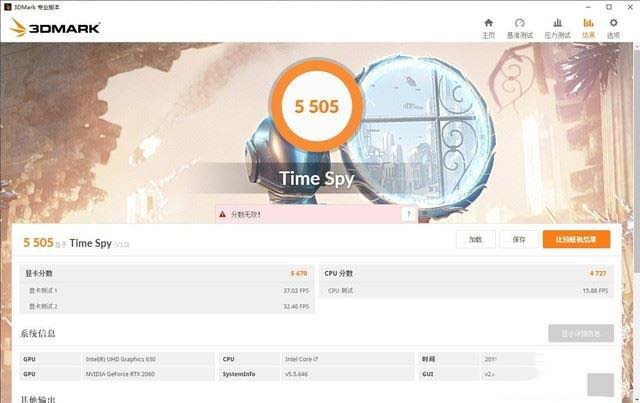 從3DMark測試來看,這個分數非常理想,RTX獨顯能夠完美勝任目前大多數3A游戲的性能需求,看來i7處理器的生產力表現非常強勁,帶動了總分的提升。
