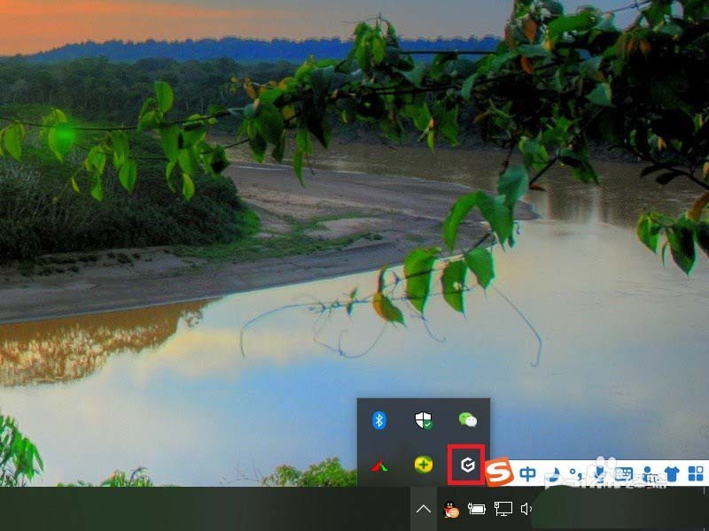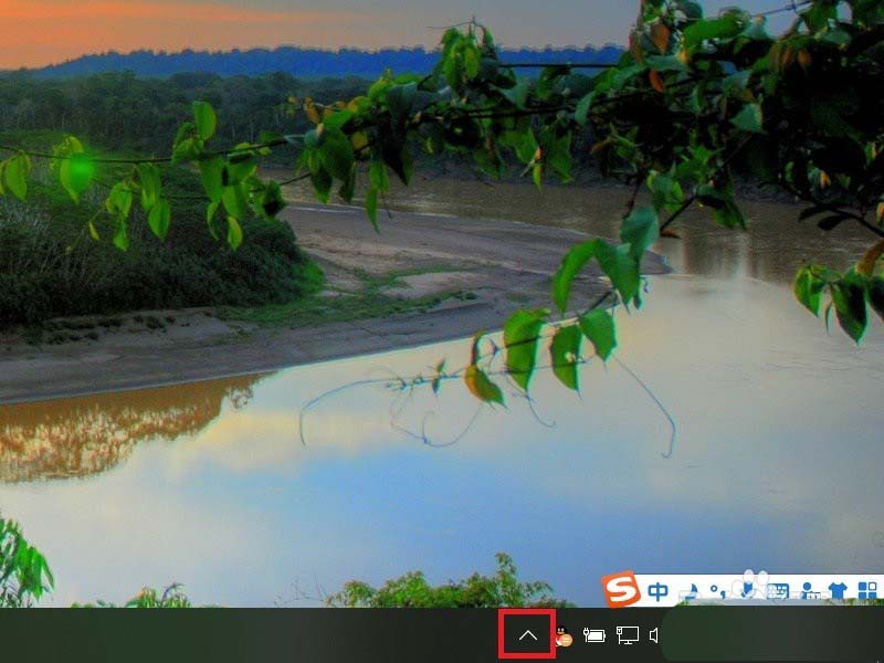 1、這里以Win10操作系統為例,點擊桌面任務欄底部的“展開”箭頭,展開系統托盤圖標。