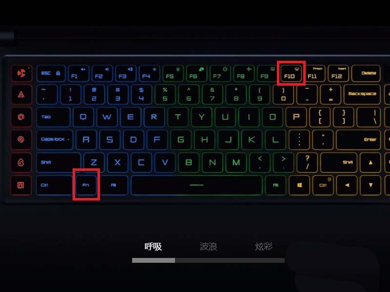 2、還是按照同樣的操作步驟,連續多次按下Fn鍵+F10鍵,直至鍵盤燈不再亮起,即意味著鍵盤燈已經處于關閉狀態了,同時屏幕上會顯示亮度被關閉的指示模塊。
