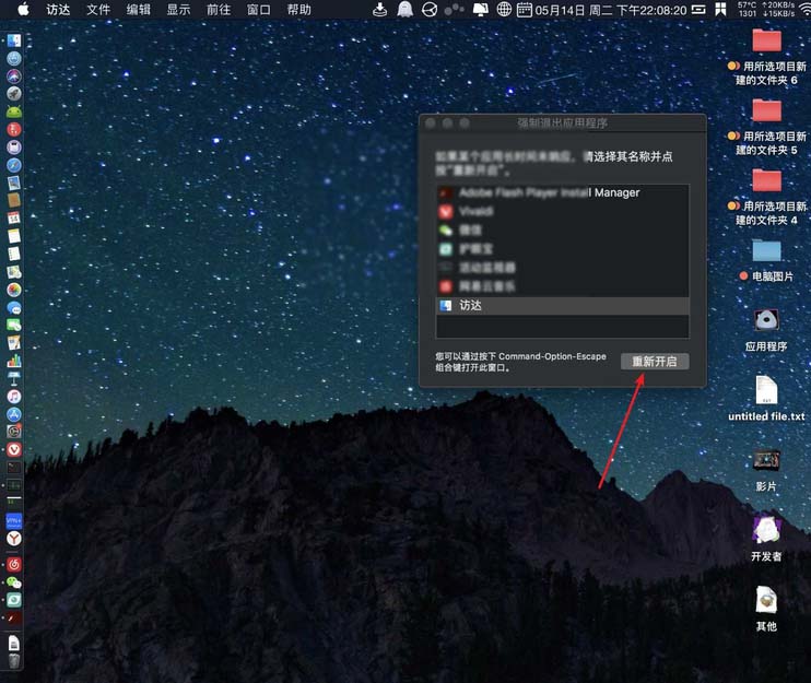 4、再次點擊finder,那么卡死的預(yù)覽被退出了。