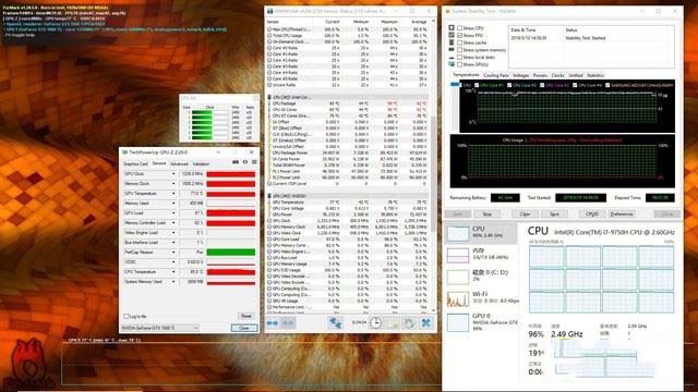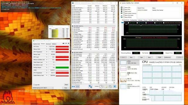 之后我們用AIDA64系統穩定性勾選FPU+Furmark(1080P,0×MSAA)的雙烤測試來驗證筆記本的散熱效果,雙烤時間為30分鐘。
