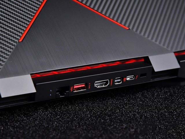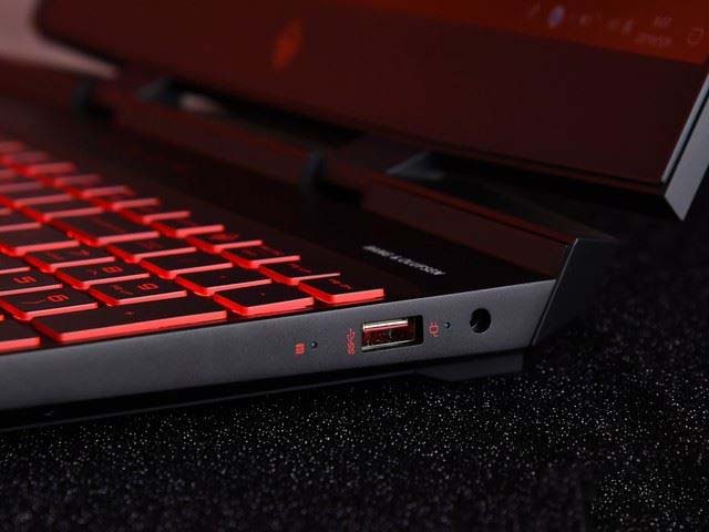 暗影精靈5的接口仍然分布在左、右、后三側,左側有一個USB 3.1 Gen 1、一個耳麥插孔、一個麥克風插孔、一個標準SD卡槽,右側有一個USB 3.1 Gen 1接口和一個電源插孔,后部接口有RJ-45網口、USB 3.1 Gen 1、HDMI、Mini DP、雷電3各一個。總的來看,暗影精靈5機身左右側和USB接口數量較豐富,配備雷電3接口要給好評。