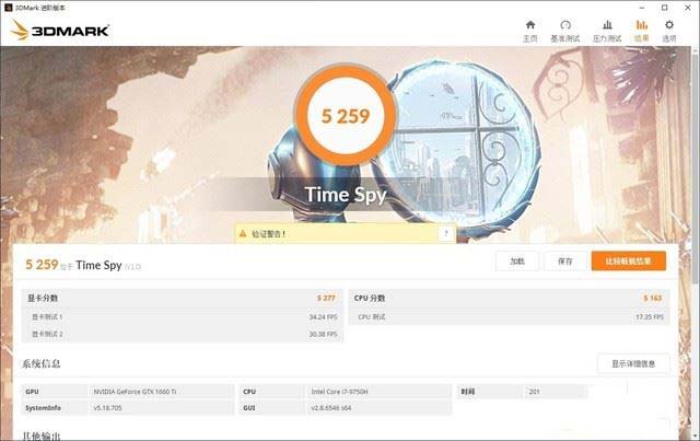 顯卡方面,GTX 1660 Ti在3DMark Fire Strike和Time Spy中的顯卡分分別是13916和5277,同樣也屬于GTX 1660 Ti的正常分數。
