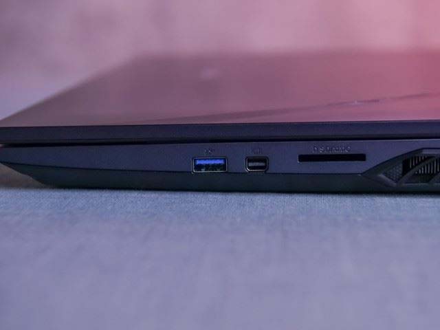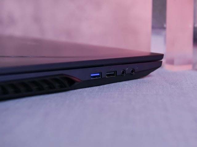 接口分布在筆記本的左、右、后三面,左側接口有一個USB 3.0、一個USB 2.0、獨立式耳機/麥克風插孔,右側有一個USB 3.0、一個Mini DP和一個標準SD卡槽,后部有一個Type-C接口(支持DP視頻輸出)、一個HDMI、一個RJ-45網口和電源插孔,接口數量非常豐富,基本上照顧到了玩家的絕大多數需求。