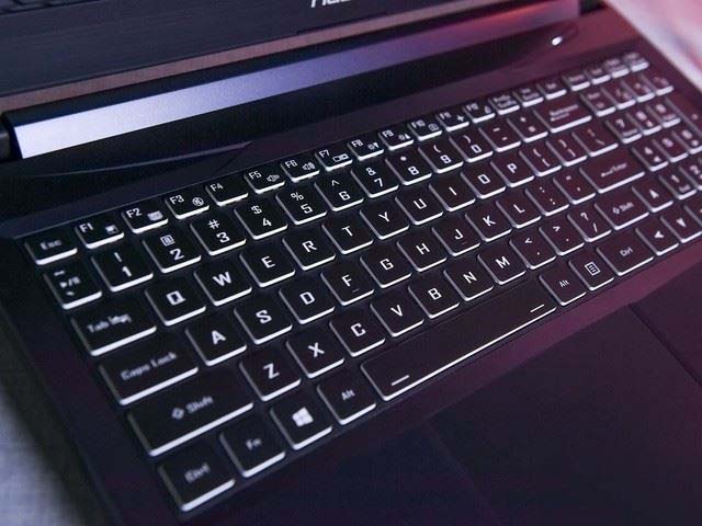 戰神Z7-CT5NA采用了全尺寸的鍵盤,右側有數字鍵,按鍵支持單色背光,顏色可以在筆記本自帶的Control Center中調節。按鍵的鍵程比較長,回彈有力,輸入體驗很不錯。