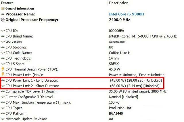 i5-9300H為4核心8線程,基礎頻率2.4GHz,最大睿頻4.1GHz,8MB三級緩存,TDP 45W。相比上代的i5-8300H,i5-9300H的核心/線程數量、三級緩存、核芯顯卡型號、TDP都沒有變化,只提升了100MHz的基礎/最大睿頻頻率以及50MHz的顯卡最大動態頻率,性能提升比較有限。