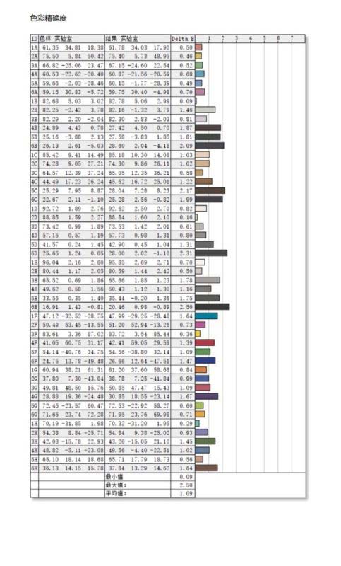 色彩精確度同樣非常出色,平均值僅為1.09,最大值也不過2.5、最小值達到0.09,可以說48色精確度達到了極其高的標準,所以Surface Studio 2是相當適合專業設計師的生產力工具,完全可以省去購買專業顯示器的錢,要知道一臺出色的專業繪圖顯示器,其價格至少也得上萬。
